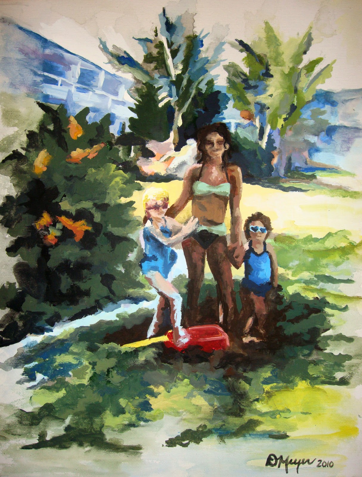 I just finished another assignment! This one was suppose to be semi-similar to the style of Jacob Lawrence and express a significant story, memory, or moment from our childhood … so, once again, my focus includes the Florida Keys.