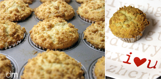 - For the crumb topping: In a small bowl, mix together brown sugar, tablespoons flour and cinnamon. Add butter until mixture resembles coarse cornmeal. Sprinkle topping over muffins.