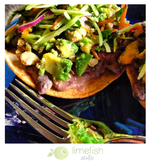 Mmmm….. these black bean salmon tostadas with avocados were delicious! After posting one of my instagram photos I had several requests for this recipe….. so here you go! I will give a little warning that they’re quite messy, but definitely worth it!