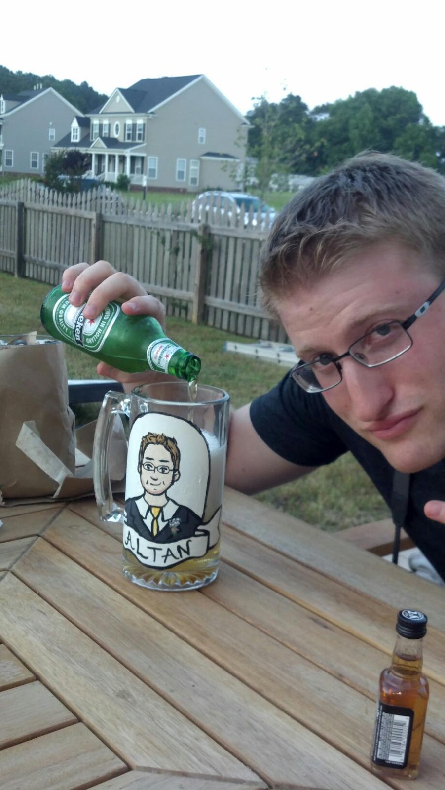 The paint I use is an enamel paint that is baked, which makes the glasses water (and yes, beer) resistant, and the guys were quick to put them to great use!