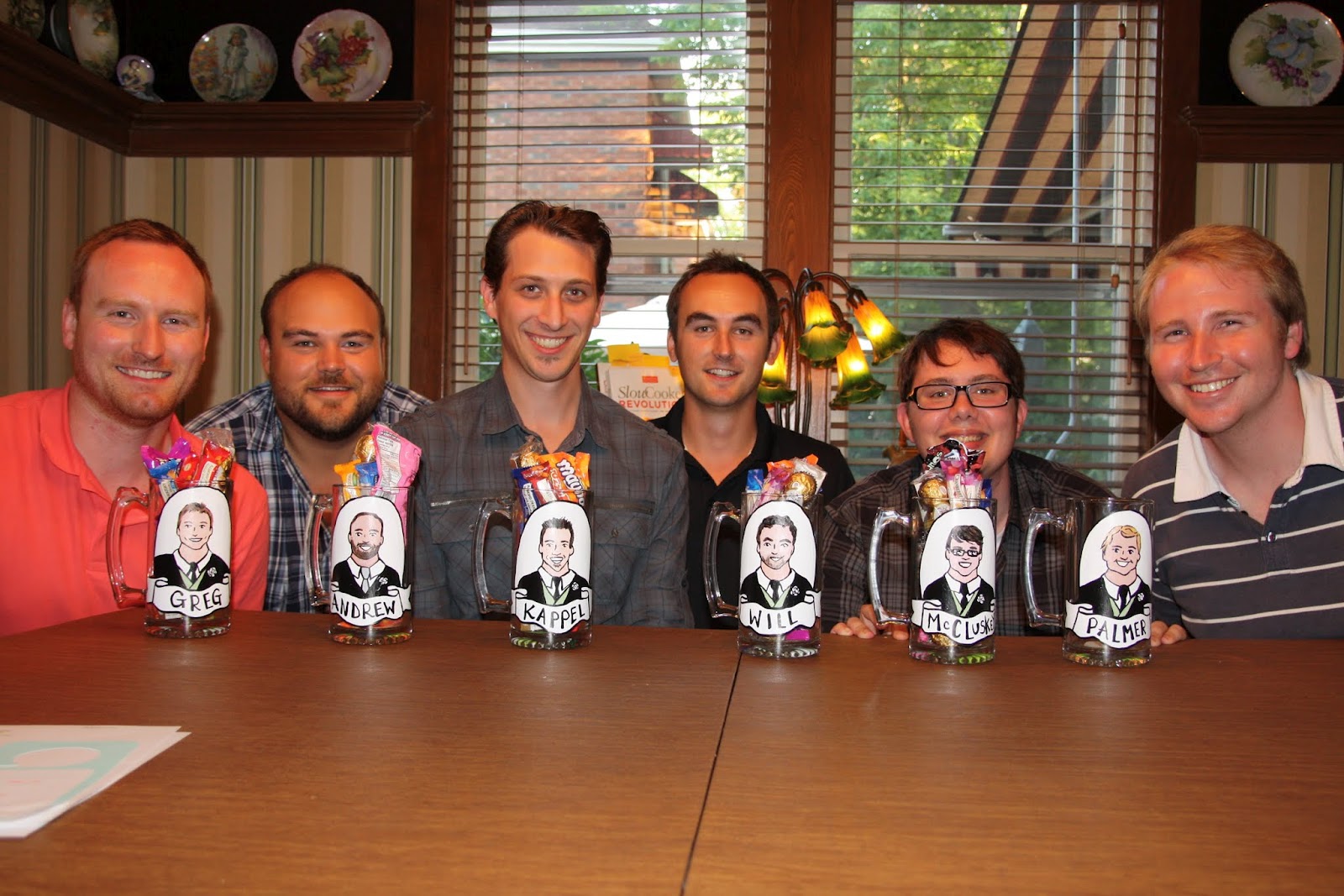 I’m so pleased that some couples have actually been sending me photos of the guys with their mugs. It’s also interesting to hear the different ways people have filled them. For example the first couple added airplane bottles inside, and this group below, got mugs filled with candy. yum!