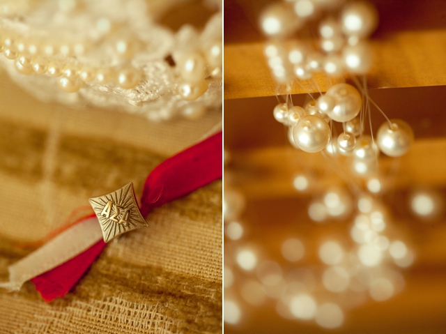My mom was so kind to let me not only wear her veil, but to have it altered. Her bright white veil originally had a wide lace headband which I had transformed into this cuff bracelet above, and then a simple prong clip was added to the veil after it was dyed ivory. The garter was my “something blue” and was actually caught by my now-hubby during a recent friend’s wedding (the same night I caught the bouquet). My floating pearl necklace was my “something old.” Believe it or not, I actually bought the necklace at a thrift store while shopping with my Nana in the Florida Keys when I was maybe 12 years old! I’ve loved it and held onto it ever since. I’ve tried it on a million times, but never had the right occasion to wear it… until now! And, I’ll let you in on a huge secret: the flower I wore in my hair was actually from Michaels for less than $5! I fell in love with it before I even bought my gown and it just so happened to match perfectly. My Alpha Sigma Alpha pin was hidden away somewhere under the layers of my dress.