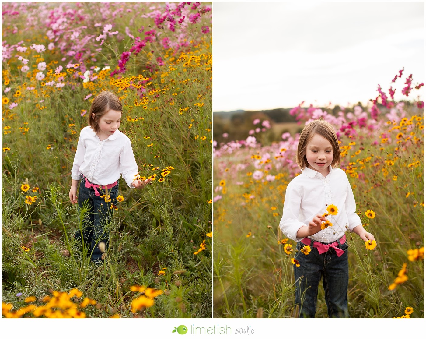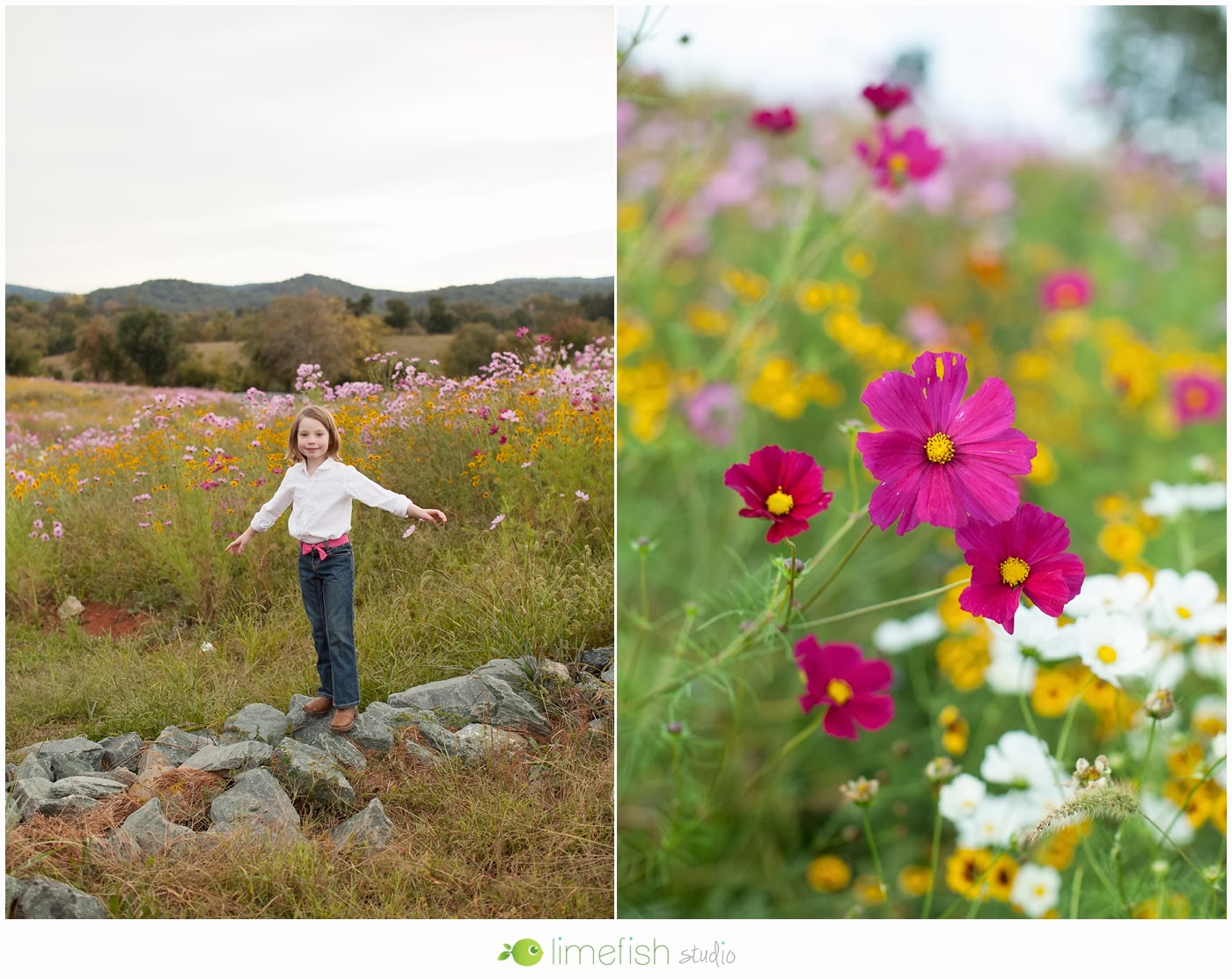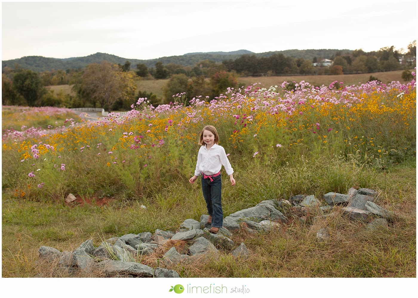 Charlottesville is a gorgeous place to live, and I’m constantly finding new scenic spots just begging to be photographed. This incredible field of wildflowers was still in full bloom (surprising for October) and made the perfect location for sweet Addie’s first grade portraits. She was thrilled to explore and stand amongst the beautiful flowers – many of which were taller than her!