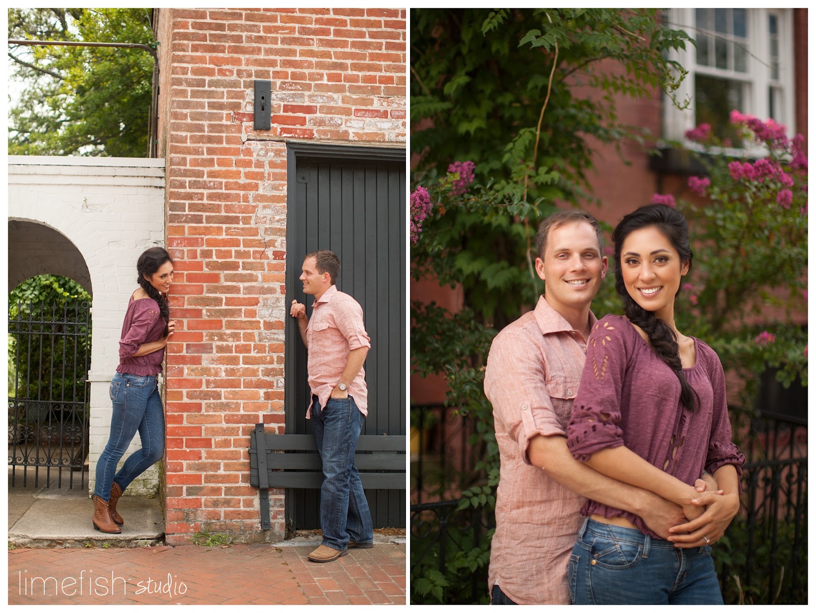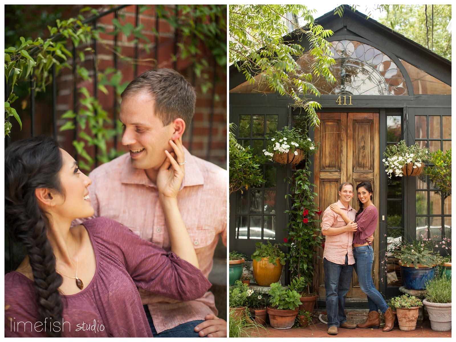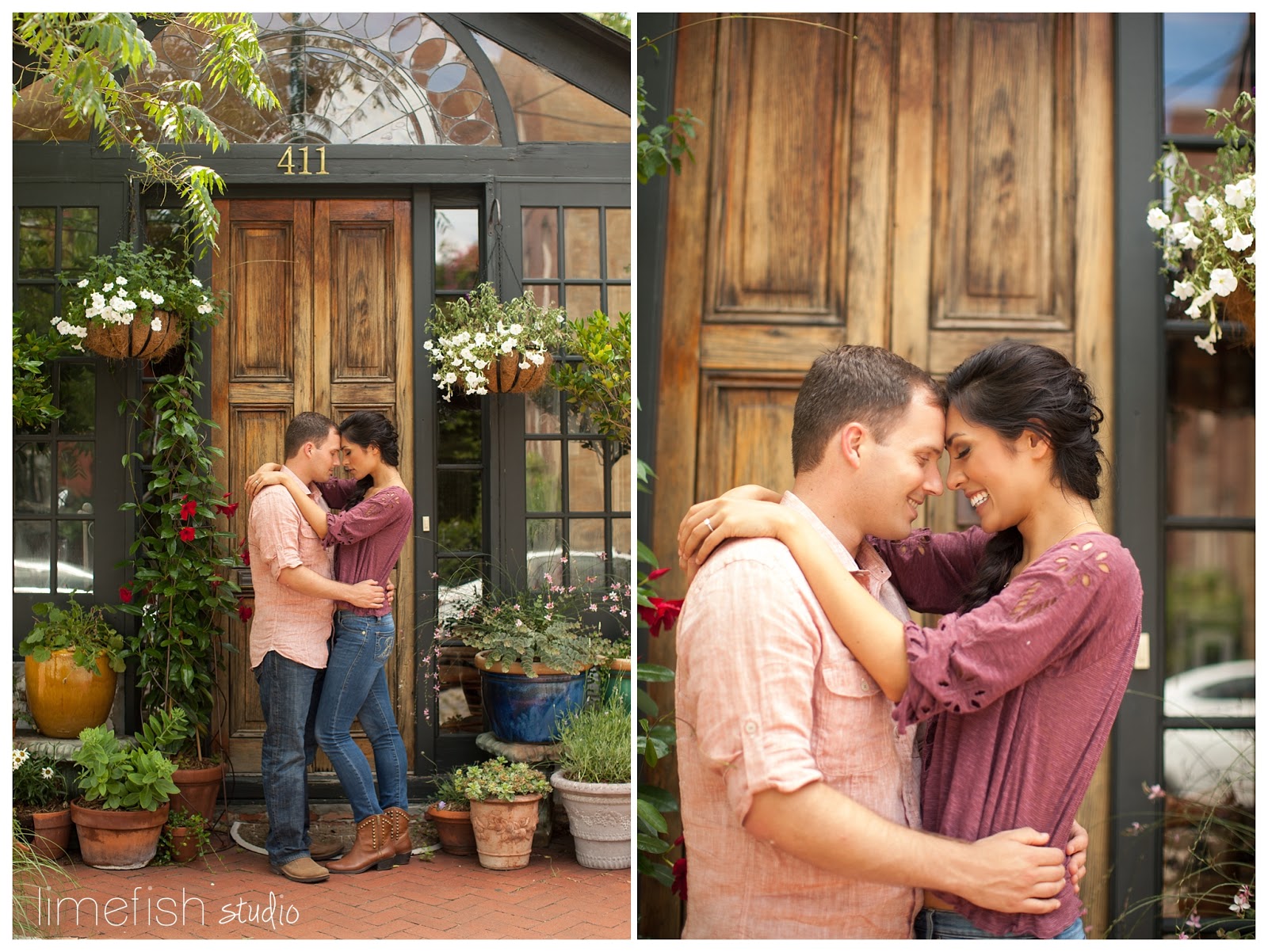 For part of their engagement session, we wandered the Freemason District in Norfolk, since it has similar qualities to the areas they love in Charleston. This area also has a cute little bed and breakfast which they’d stayed at before Rob’s deployment!